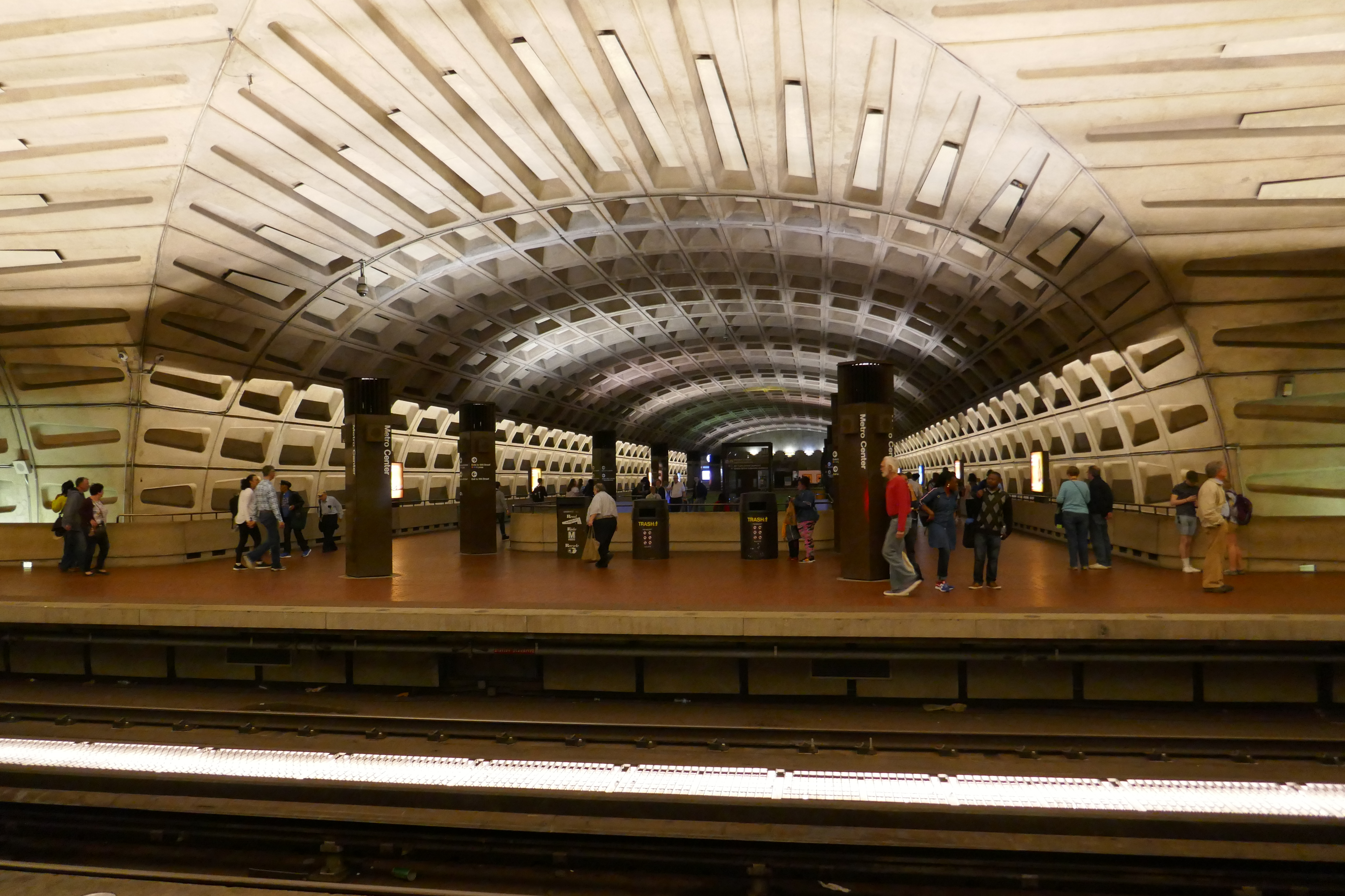 A view of one of the junction stations of the D.C. Metro. Really cool architecture - I adore the D.C. Metro stations. They are like concrete cathedrals, delicate ballets in light and mass, coffers sculptural above the coming and going of trains.